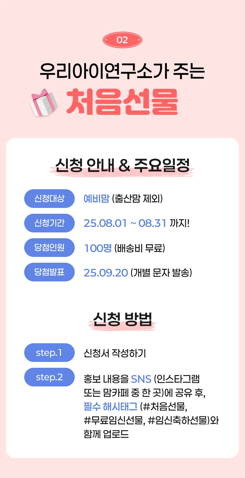 개인정보 제공항목 : 성명, 주소, 이메일, 생년월일, 성별, 휴대폰번호, 아이이름(태명), 출산예정일(아이생일), 참여일시, 참여매체